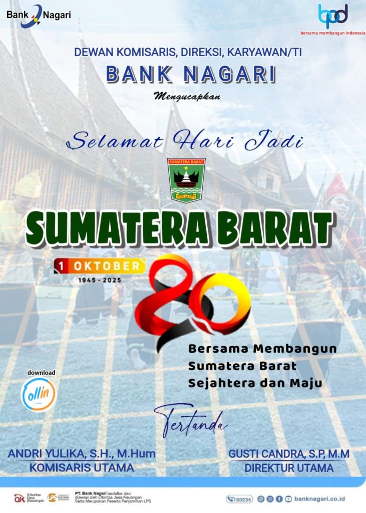 Gubernur Hadiri Malam Resepsi Peringatan Hari Jadi Provinsi Sumbar Ke-80