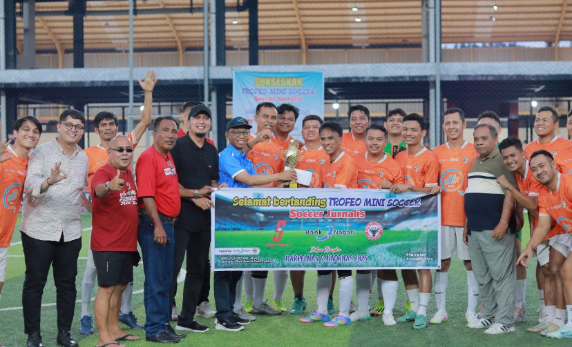 UtusanIndo.com, Padang, — Tim Bank Nagari juara Trofeo Mini Soccer Jurnalis, setelah mengalahkan Semen Padang 2-0 pada laga final di Lapangan Dobi Sports Hub, Padang, Sabtu, (27/9/2025).